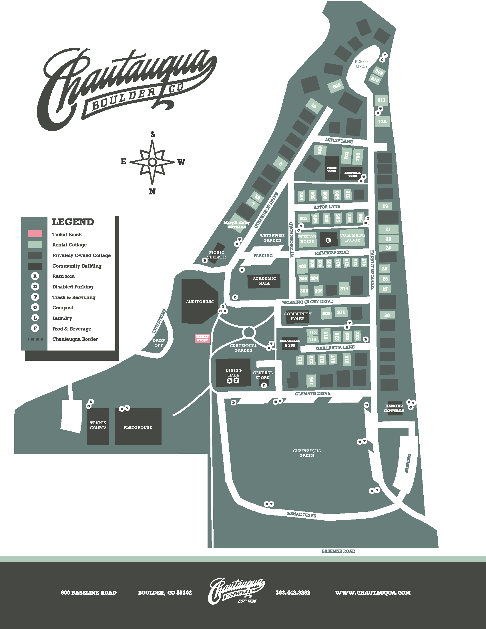 Chautauqua maintains a useful list addressing accessible parking, service animals, ADA restroom facilities, assistive listening devices, and more. Please visit the Chautauqua website for more information.